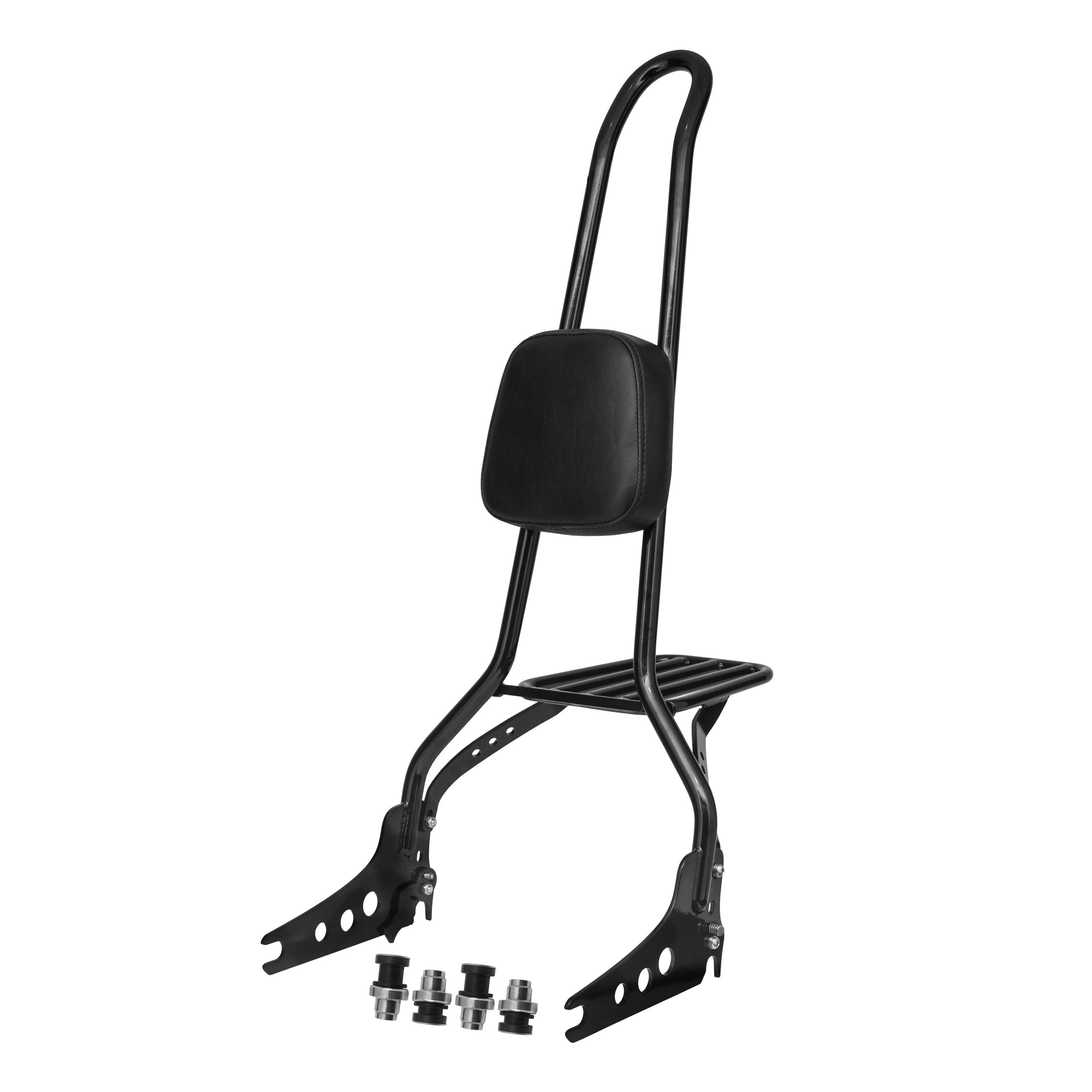 - Altura: 30” (A medição deve ser feita da base do sissy bar até o topo do arco)